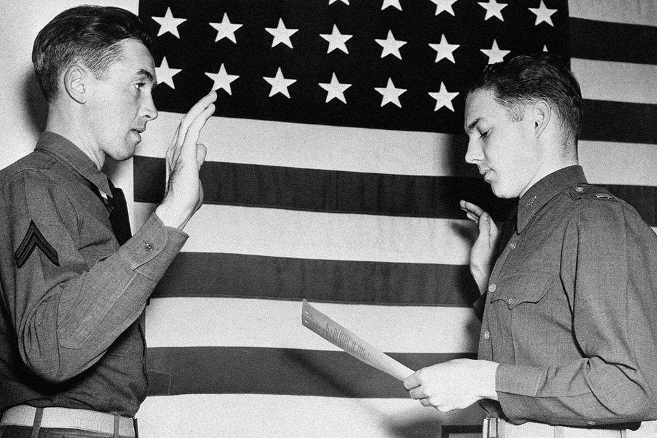 Stewart was drafted into the Army in 1940 but was rejected because he was too skinny. At 6’ 3” he weighed only 138 pounds. After eating a steady diet of spaghetti, steaks, and milkshakes he finally qualified and shouted to fellow actors, “I’m in! I’m in!” He was stationed at Moffett Field, California and earned his pilot wings in the Air Corps.
