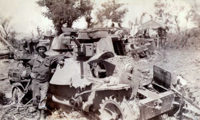 Crew from the second tank dismounted to attack him. But He fought back with his .45 Colt 1911, chasing them back into the tank. Then he reloaded the bazooka and destroyed his second armored vehicle of the day.