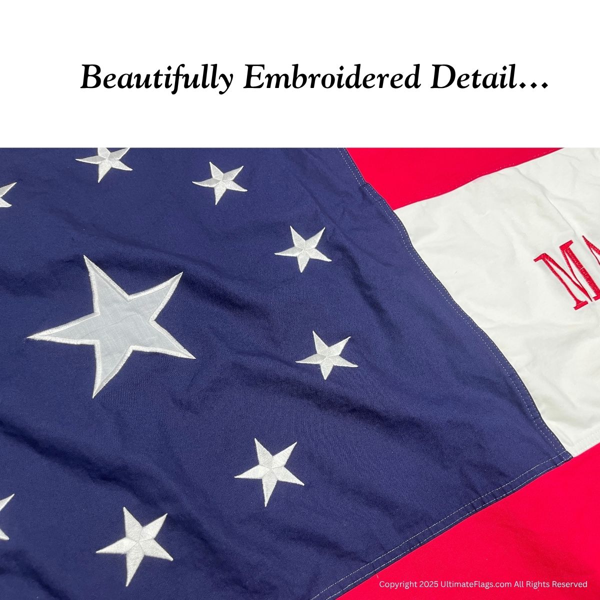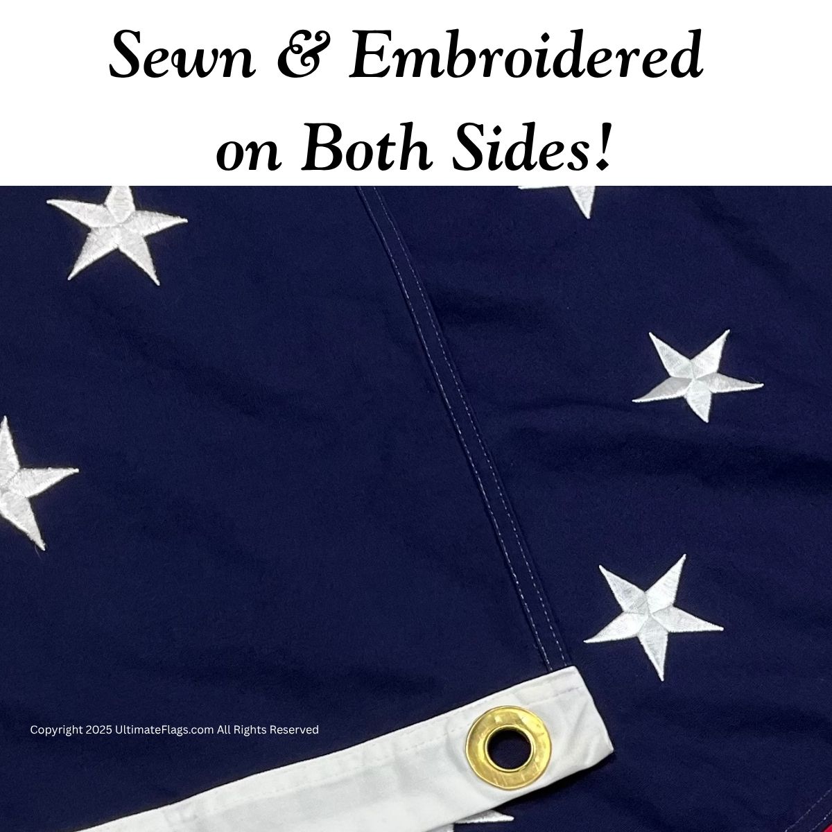 Yes — unlike most flags, the lettering is sewn to display correctly on both sides, a premium and historically respectful feature.
