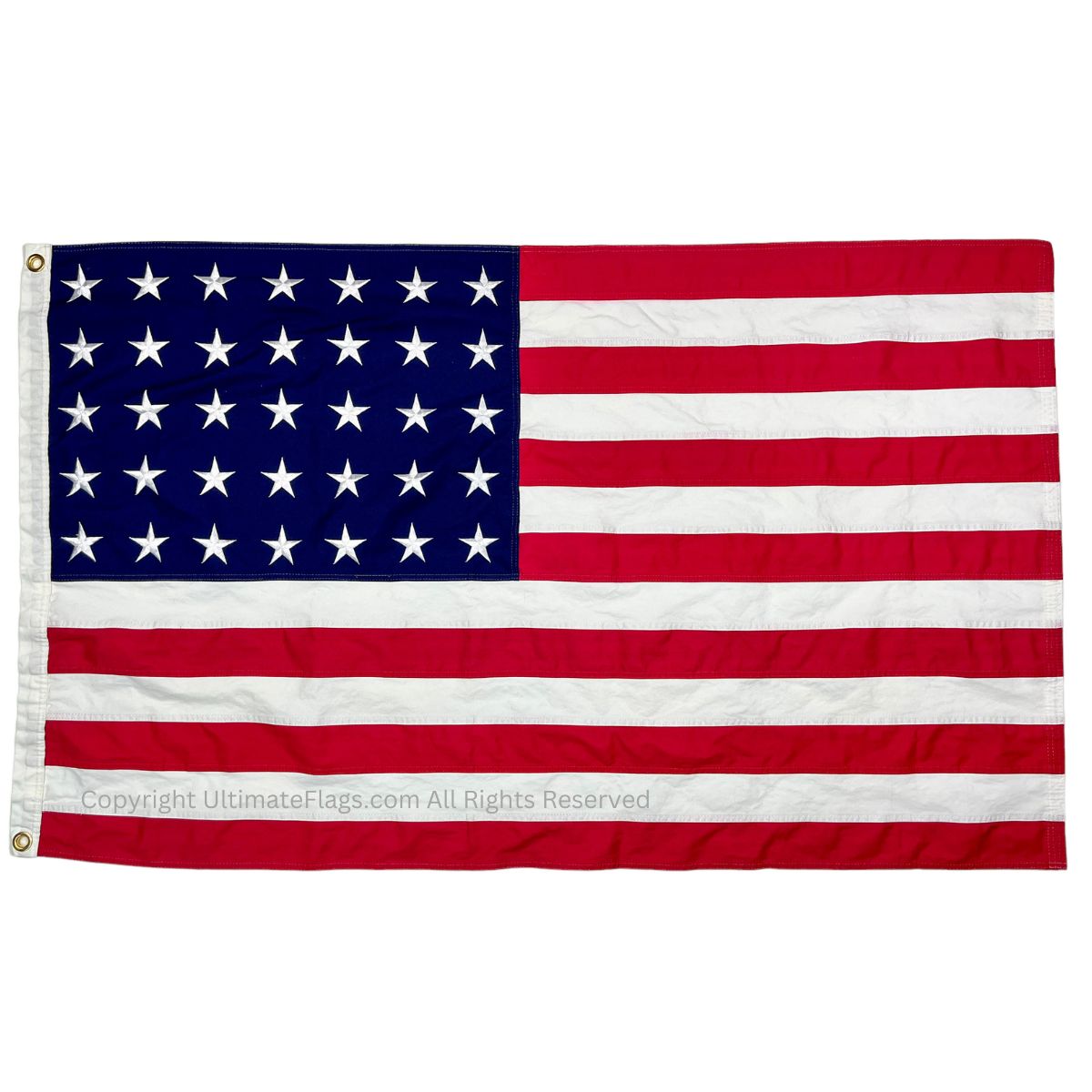 35 Star Great Union USA Flag was used from 1863-1865. The 35 stars represent the 35 states admitted to the Union at the time. The stars are in the shape of a star.
