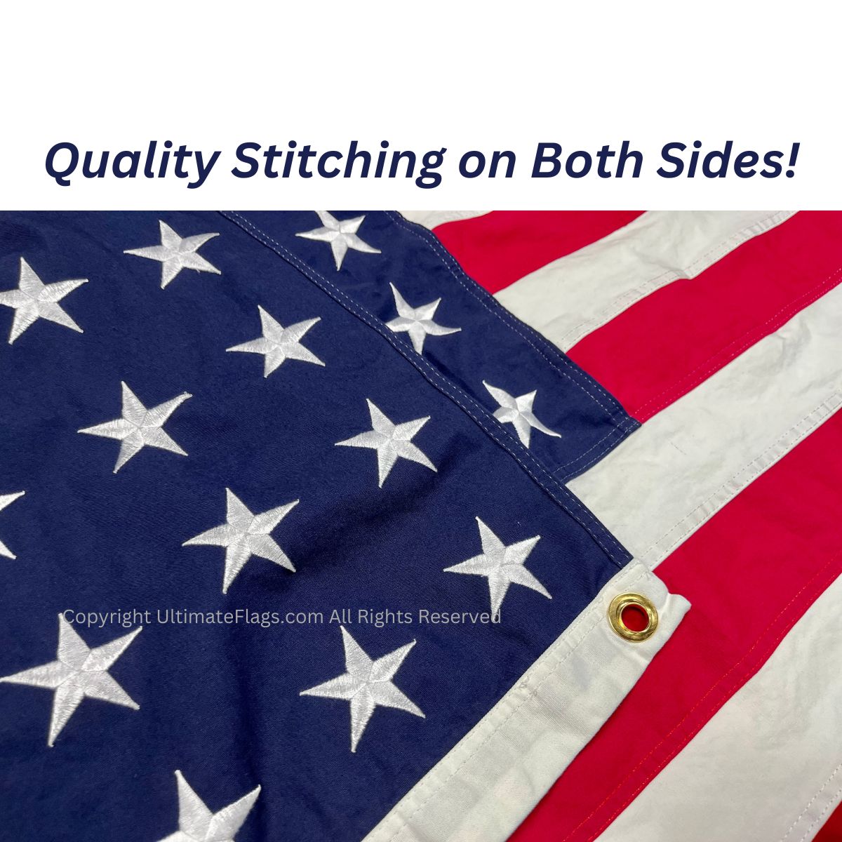 Double Sided (2 flags sewn back to back with liner inside- so nothing reads backwards on back side)