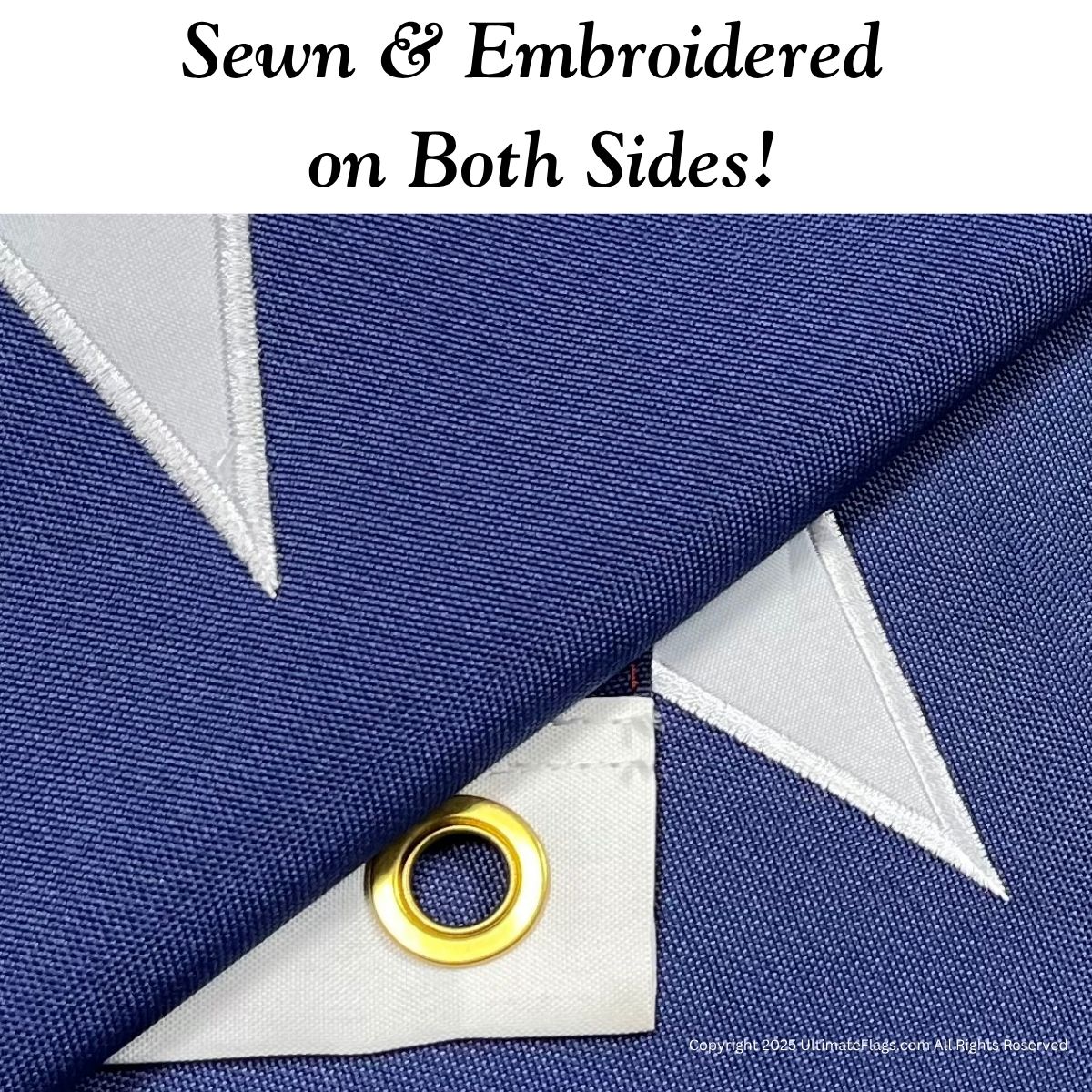 This flag reproduction honors that story with military-grade double-ply embroidered nylon and museum-level construction quality.