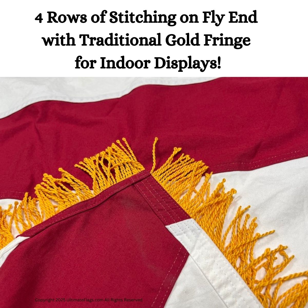Alabama Flag – Cotton Sewn with Pole Sleeve / Hem with traditional Gold Fringe for indoor displays