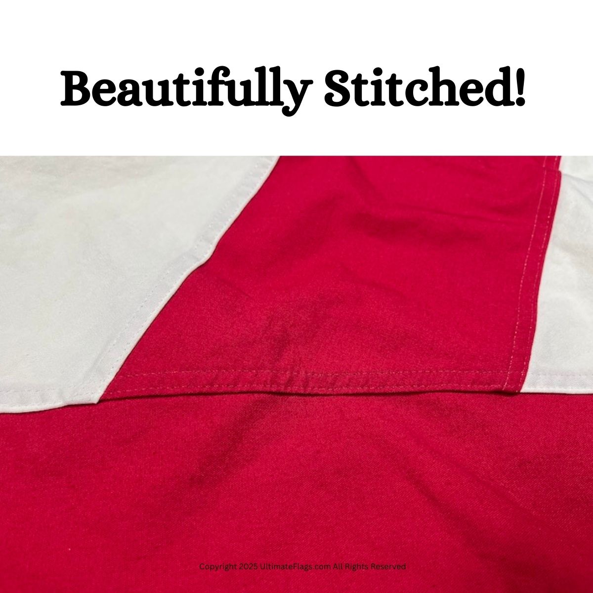 Note on the reverse (backs) of flags: It is standard traditional flag construction that images, words and other adornments on a flag are “backwards” when viewed from behind. It is not correct to sew two standard flags back-to-back in order for them to read the same from both directions.