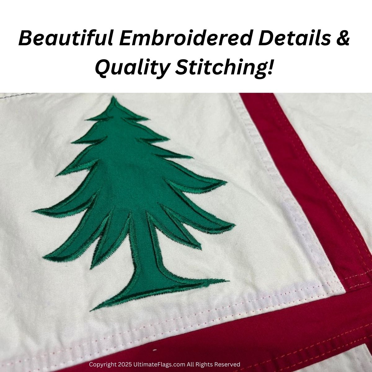 The Bunker Hill flag is a popular Revolutionary War flag. Its base is that of the British Ensign flag of the day. This symbolizes the colonist’s yearn to have a strong empire like the British’s. The pine tree was a symbol of freedom back then and was place in the canton to symbolize just that.
