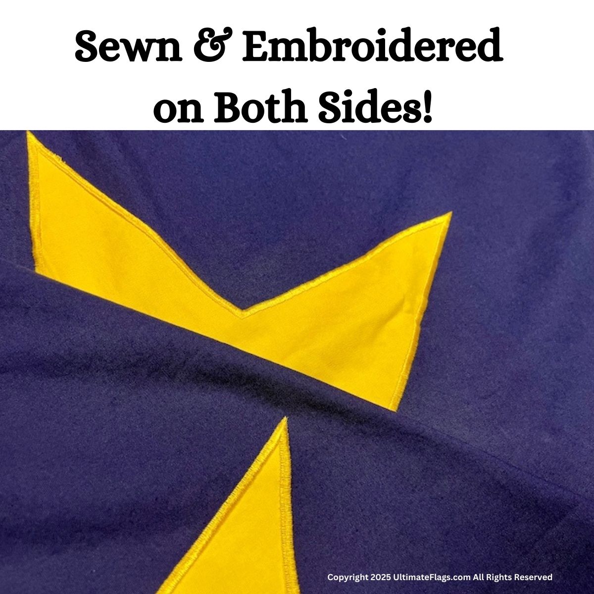 Double Sided (2 flags sewn back to back with liner inside- so nothing reads backwards on back side)