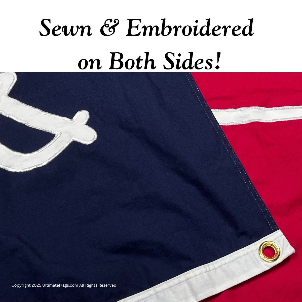Note: This cotton flag is intended for indoor or ceremonial use only. For lightweight or all-weather use, see our nylon version.
