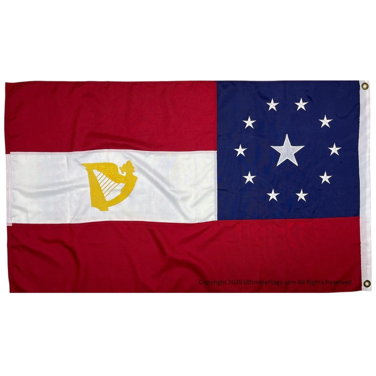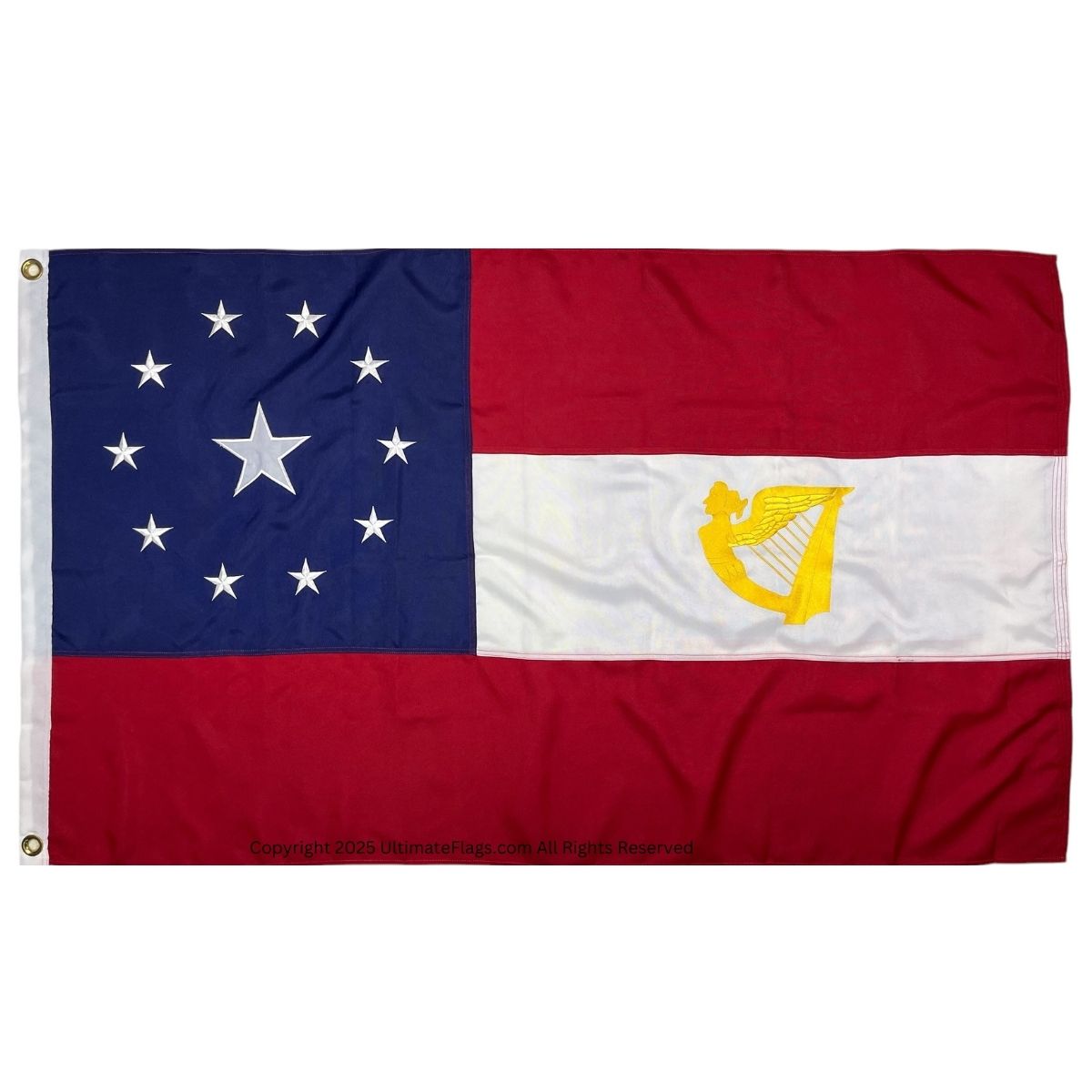It is a First National Confederate States of America flag with a yellow harp in the white stripe.