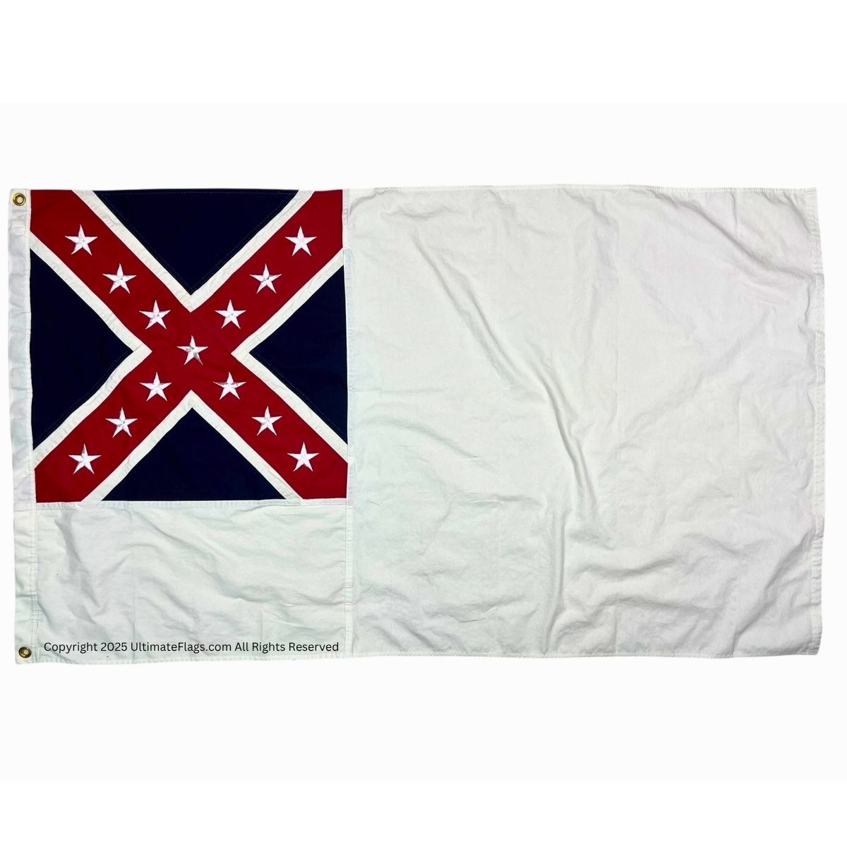 Known as the “Stainless Banner”, this version became the official national flag of the Confederacy in 1863, replacing the First National Flag with a design that included the battle cross and a white field.