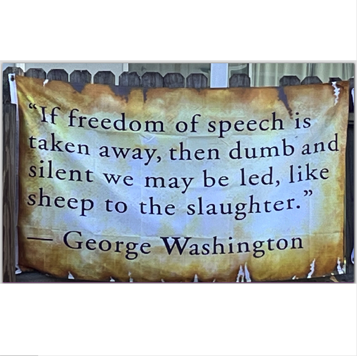 Reads: If Freedom of Speech is Taken Away, Then Dumb & Silent We May Be Led, Like Sheep To The Slaughter ~ George Washington (From the Newburgh Address Given to Officers of the Army, March 15, 1783)