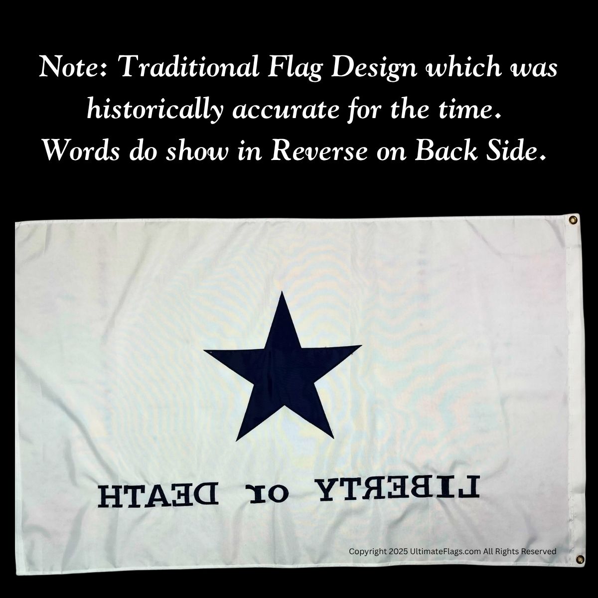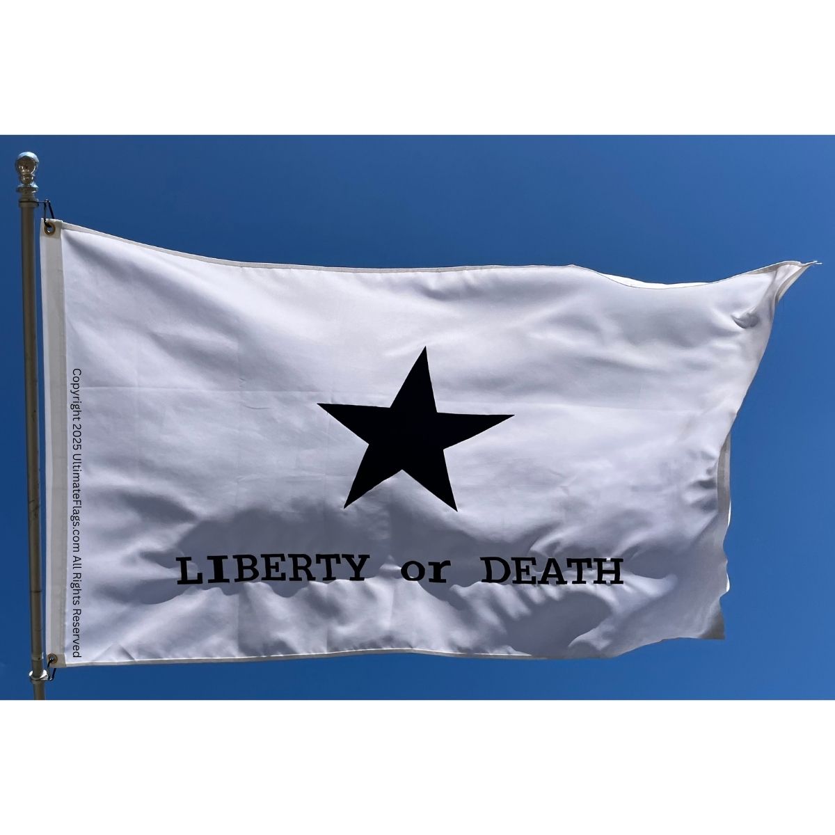 Most accounts state it read “Liberty or Death”. Some references mention “Texas and Liberty”, but the majority consensus supports the original motto.