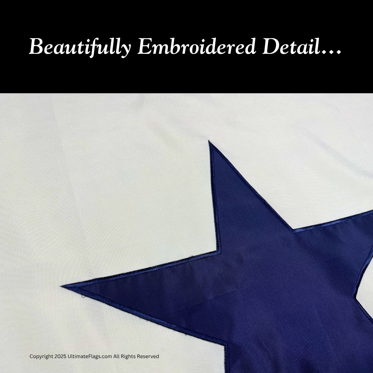 Design: Fully embroidered blue star and lettering on white field