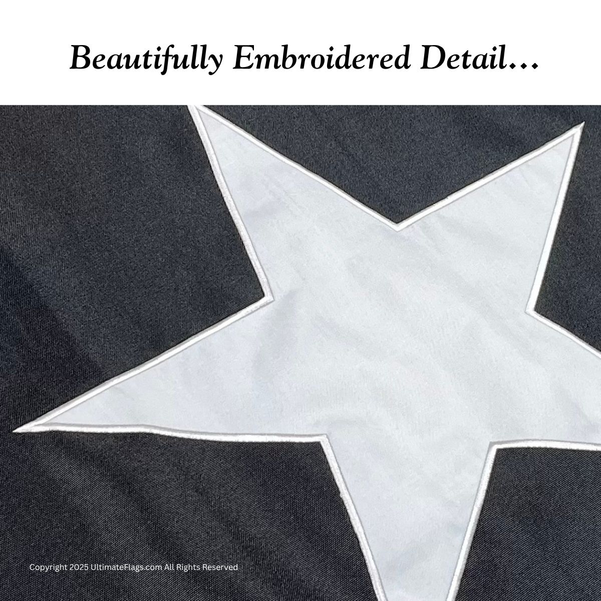 Constructed for extreme durability, this 3×5 ft embroidered flag uses double-ply 600D military-grade nylon, precision-stitched and reinforced to handle everything from battlefield exposure to long-term all-weather display. The embroidered design provides superior texture, contrast, and longevity compared to printed alternatives.