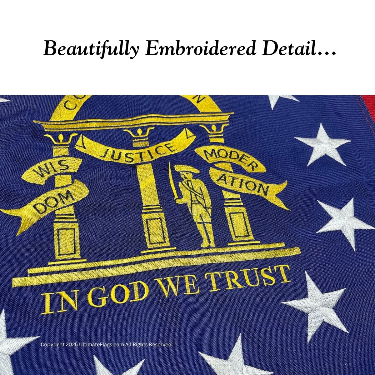 Georgia State Flag – Current Official GA Flag | 3×5 Ft Double Nylon Embroidered (Outdoor/Commercial Grade)