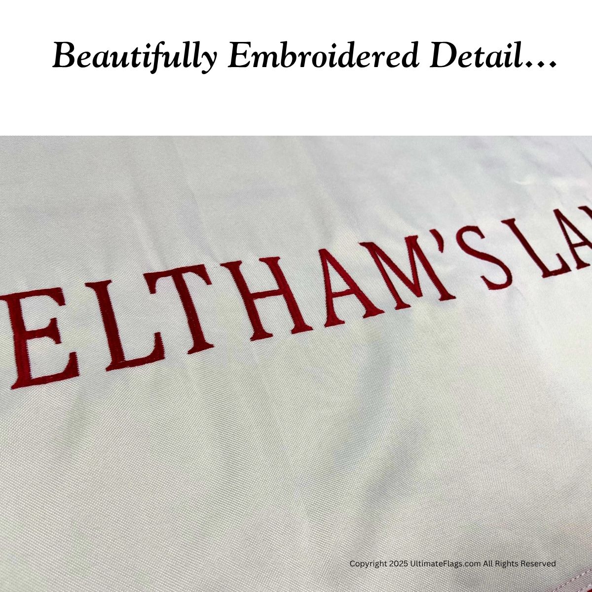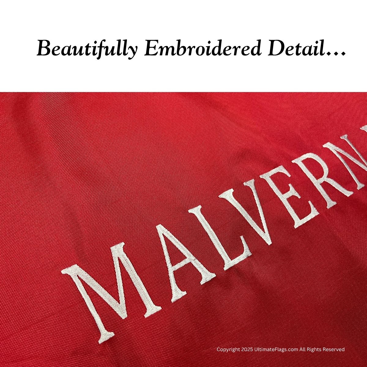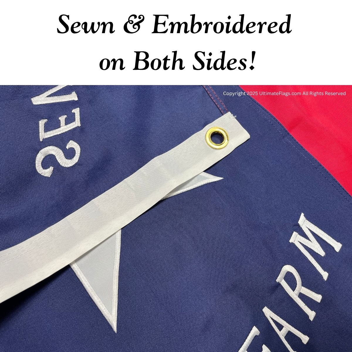 Yes. Crafted from double-ply nylon with embroidered stitching, it’s waterproof, fade-resistant, and reinforced for all-weather outdoor display.
