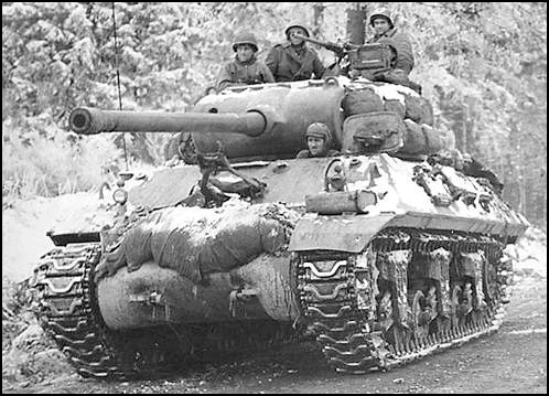 The Battle of the Bulge, so-called because the Germans created a “bulge” around the area of the Ardennes forest in pushing through the American defensive line. It was the largest fought on the Western front. The Germans called it Operation Mist. It came as a complete surprise to the Allies, and it was massive. The 7th Armored Division was there. Nicknamed the Lucky 7th, it was a tough, hard-fighting unit. Its commander, General Hasbrouck, tells us about a wounded enemy soldier who remarked,